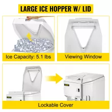 - Large Ice Hopper: The 5 lbs capacity hopper reduces frequent refills, and the lockable lid keeps ice clean and secure during operation.