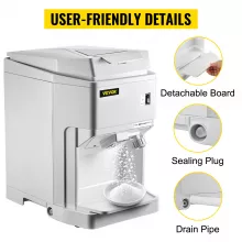 - User-Friendly Design: Includes a detachable support board for stability, a water drainpipe to manage melted ice, and a safety switch with a reverse function for added convenience.
